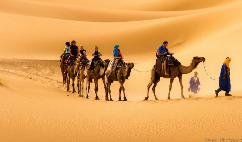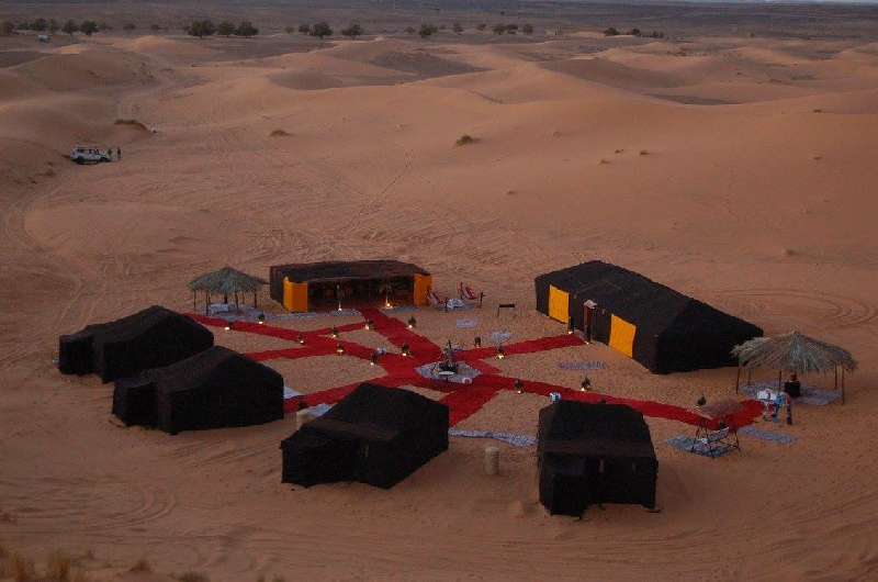 Drive from Fes via the cleanest city of Ifrane in the feet of the middle atlas, then reach the ‘’ceder gourou’’ forest with its oldest tree in Morocco , and the home of macaques families, benefit from stops for photo of the beautiful scenery of the oued ziz one of the most important caravan routes , arrival to erfoud and sijilmassa the oldest village of Morocco and the starter point of the ‘’ALAOUITE’’ dynasties. After reaching the golden dunes of merzouga enjoy a camel ride during the sunset, overnight in a berber nomadic tent.