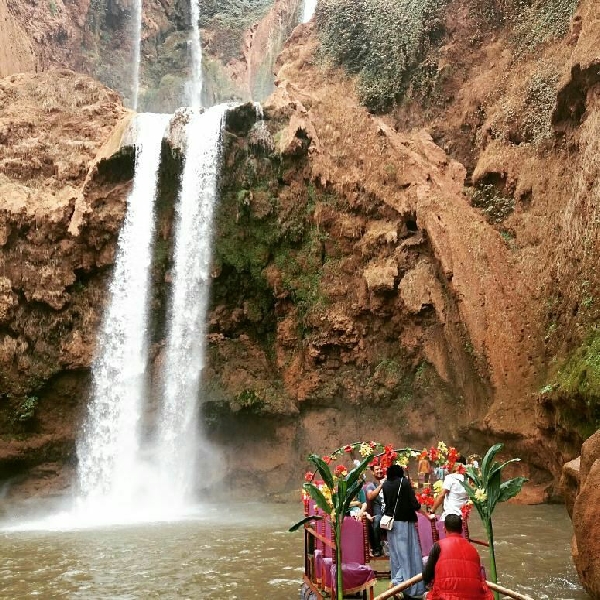 Today we drive via the motorwa to cross the beni mellal area for the famous ouzoud waterfalls, there where you will have enough time for a walk from the top to the bottom via foot bath, optional boat promenade, before to meet monkeys the main wild life at this area, enjoy a fresh Food in front of the falls, by the evening drive to Marrakech . overnight in Marrakech.